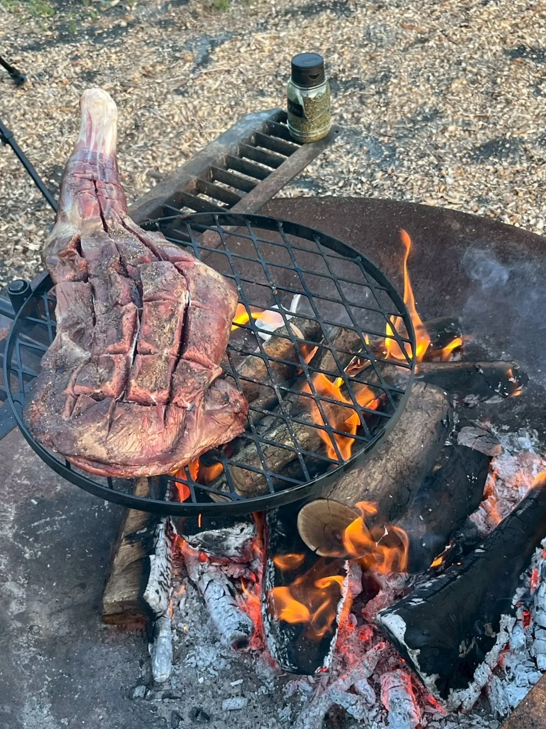 夕食は猪のもも肉のBBQと